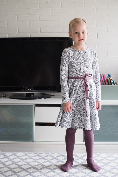 Lapsimessuilta tarttui mukaan mustavalkoinen Verson Puodin fiftarimekko.